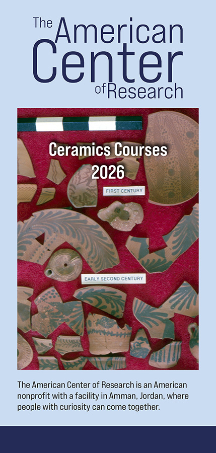 The American Center of Research announces two new courses for 2026, taught by Assistant Professor Sarah Wenner: Introduction to Classical Period Ceramics of Southern Jordan and Northern Saudi Arabia: Introductory and Introduction to Classical Period Ceramics of Southern Jordan and Northern Saudi Arabia: Advanced.