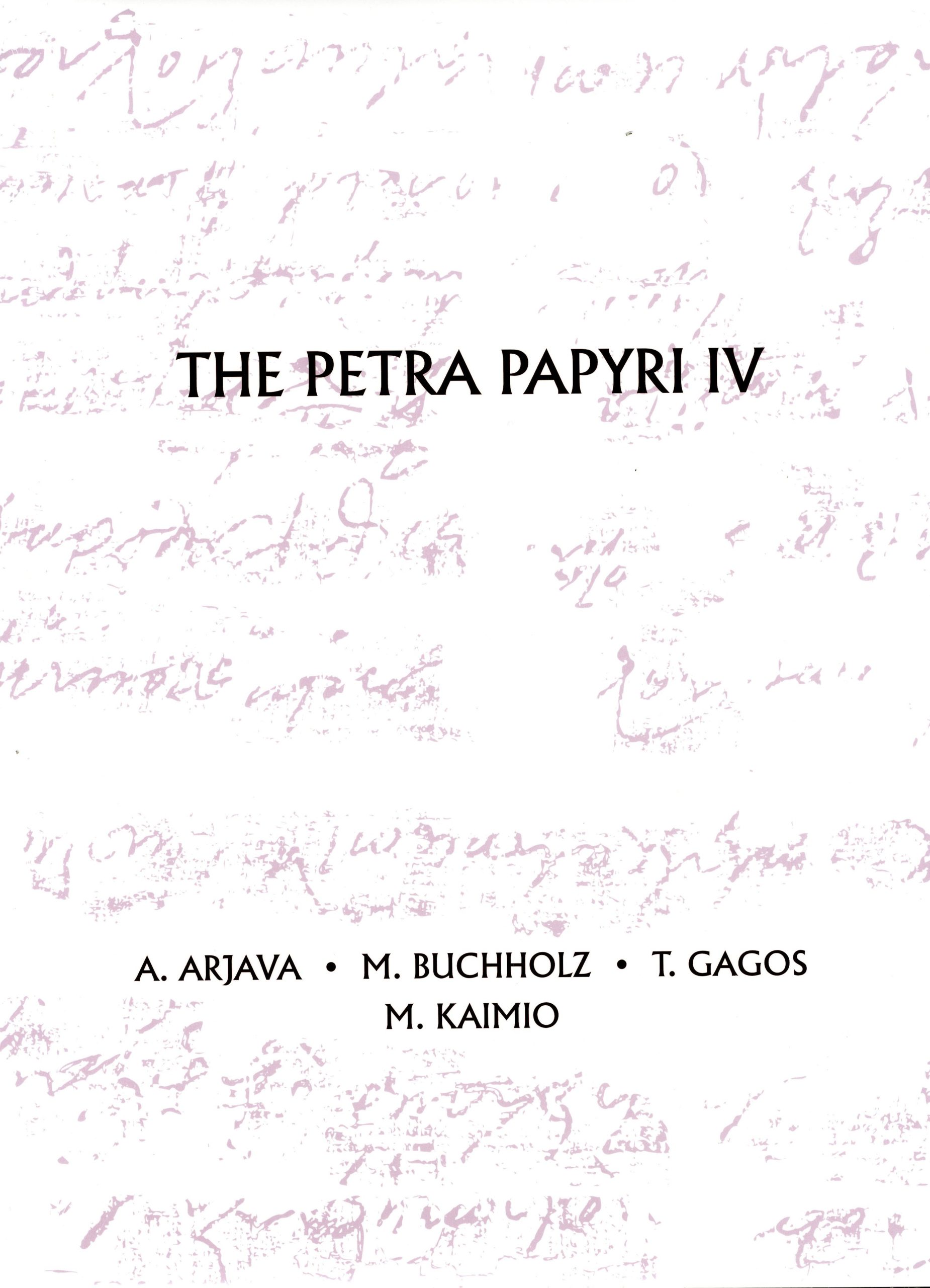 The Petra Papyri, Volume IV, edited by A. Arjava, M. Buchholz, T. Gagos, and M. Kaimio (2011). Entire set is five volumes. Hardbound. Primary document Greek language papyrus texts from the sixth century A.D. that were discovered in carbonized condition in Petra in 1993.